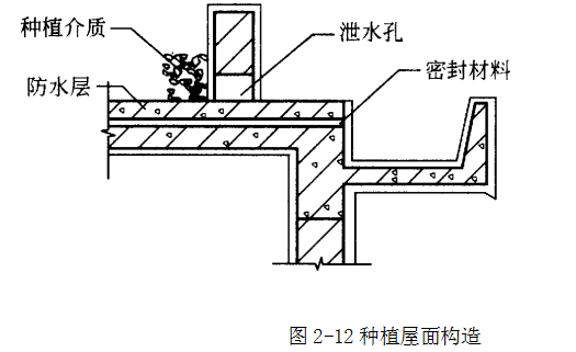 種植屋面——即在屋面防水層上覆土或鋪設(shè)鋸末、蛭石等松散材料并種植物起到隔熱作用。檐口構(gòu)造見圖2—11。