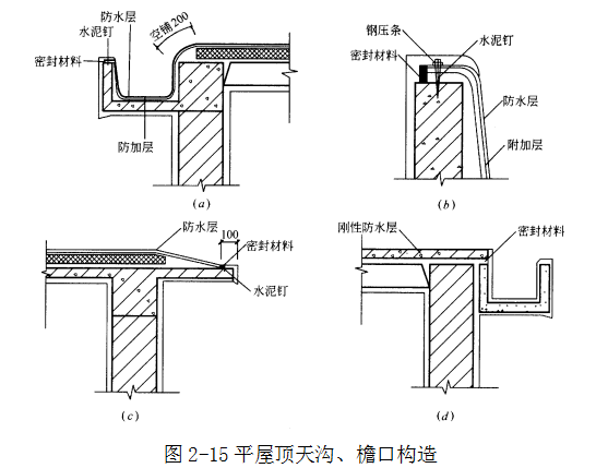 圖2-15平屋頂天溝、檐口構(gòu)造